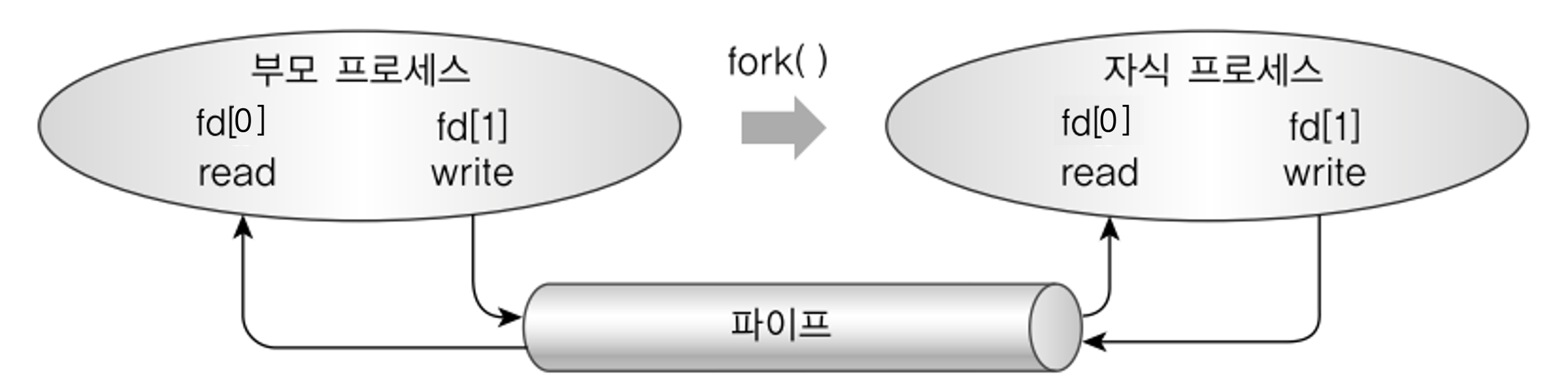 - 이름없는 파이프는 부모-자식 프로세스 간에 통신할 수 있도록 해줌