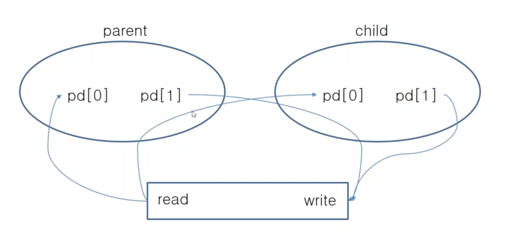 - fildes[0]는 읽기, filedes[1]은 쓰기용 파일 기술자