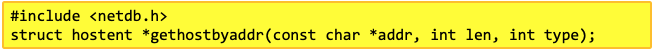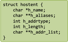 - gethostent : 호스트명과 IP주소를 읽어 hostent 구조체에 저장