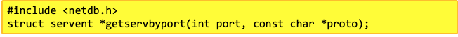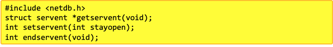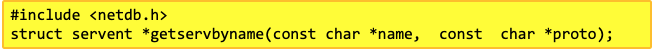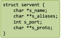 - getservent : 포트 정보를 읽어 servent 구조체로 리턴