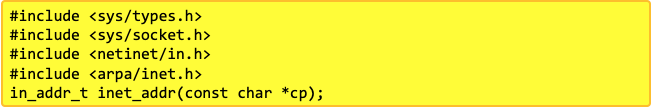 문자열 형태의 IP 주소를 숫자 형태로 변환 : inet_addr()