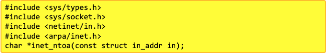 구조체 형태의 IP 주소를 문자열 형태로 변환 : inet_ntoa()