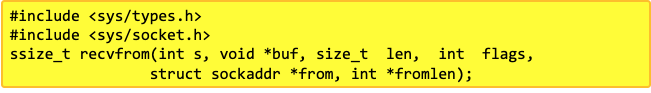 § recvfrom : 데이터 수신(SOCK_DGRAM)