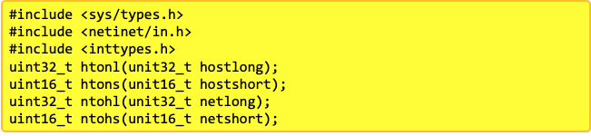 - htons : 16비트 HBO를 16비트 NBO로 변환