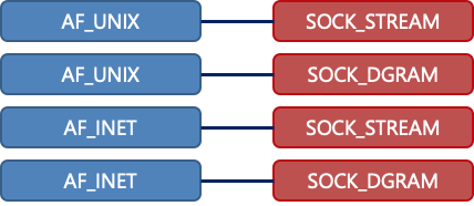 - AF_UNIX : 유닉스 도메인 소켓 (시스템 내부 프로세스간 통신)