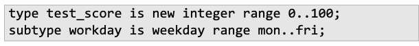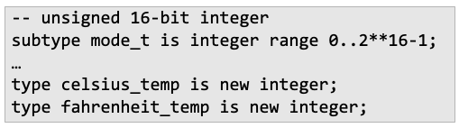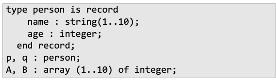 - Ada에서는 strict/loose name equivalence 둘 다 지원 : derived type or subtype