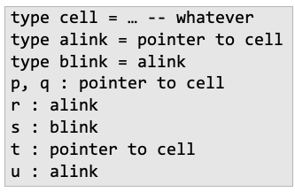 - loose name equivalence: r,s,u가 같음(p,q가 같은건 당연 | loose가 strict보다 더 루즈한 규칙)