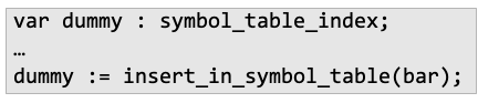 - trivial type이 없는 언어일 경우, 반환 값이 있는 함수는 반드시 아래처럼 붙여줘야함(C언어에 비해 덜 Orthogonal함)