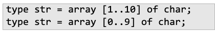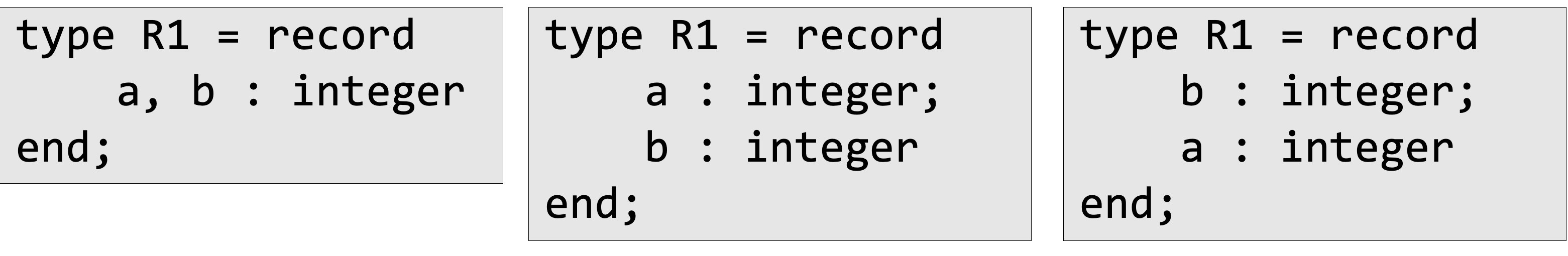 파스칼 계열의 언어들은 structural equivalence상, 변수 선언 format에는 큰 차이가 없음(즉 동일한 타입이라고 인식)