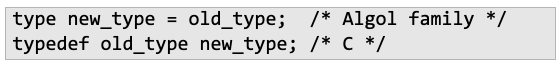 - loose name equivalence : alias 타입은 단순히 이름을 바꾼 것이므로 같은 타입으로 봄