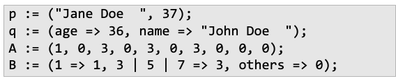 Ada에서는 모든 구조화된 타입을 위해 aggregate를 제공한다