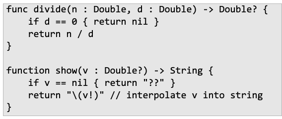 다른 다양한 언어들에서 Option type이 나타나기도 함. (Haskell, Scala, C#, Swift, Java, c++)